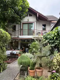 Located in a small house with warm tones, it's decorated with vintage wooden furniture and a lush garden, creating a homey atmosphere. The shop's most distinctive feature is its homemade bagels, which come in both savory and sweet flavors. They sell out quickly. When we visited at 11 a.m., the bread was already sold out. We recommend calling the shop before coming. They also offer fresh coffee, matcha, and decaffeinated drinks, perfect for pairing with bagels or bread. The shop is open Tuesday through Friday from 9:30 AM to 3:00 PM. The atmosphere is wonderful, and we loved it!