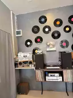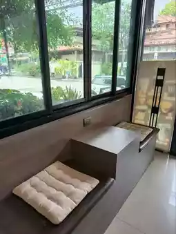 The shop also offers snacks like crispy bananas, caramel popcorn, and durian-flavored Thong Yip rolls to go with your drinks. There are two more seats at the back, a table shaped like an award-winning trophy, and a bar counter.