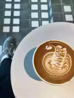 The white and wood interior is stylish and eye-catching.📸 It's popular with tourists and has an international vibe. The coffee is strong and punchy! 🥊✨✨