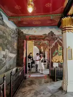 Wat Phra Sri Rattana Satsadaram, or Wat Phra Kaew, is one of Thailand's most sacred and important sites. Inside the temple, not only is the Emerald Buddha enshrined, but it also houses murals of immense beauty and historical and artistic value. This particular mural depicts the Ramakien, which is considered the longest mural in the world.