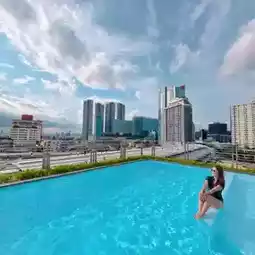 🏊♀️ Rooftop Infinity Pool: Enjoy a rooftop infinity pool with sun loungers offering views of the skyline, the city, and the BTS Skytrain.