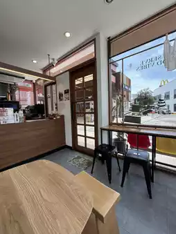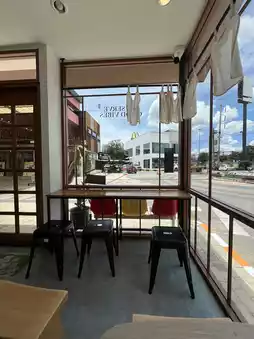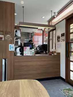 The shop isn't very large, but it's quite cute. Decorated in a warm, soothing brown tone, it has seating for waiting in front, two tables inside, and three counter seats at the bar. The shop is completely glass-enclosed, offering a pleasant view outside.