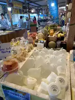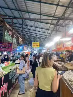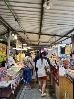 The market is divided into six zones. Each zone offers food, souvenirs, clothing, home decor, and gardening vegetables. Ready-to-eat food is the most abundant in Zones 4 and 5. Food prices start at 35-40฿.