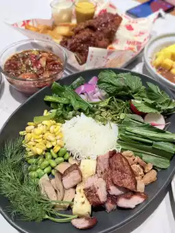 🌶️Spicy Papaya Salad with Fermented Fish and Khanom Jeen with Crispy Pork Lui Suan (Spicy Pork Salad)