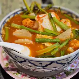 During our recent trip to Bangkok, we stopped by here for 2 meals, and we found the food to be amazing, from green curry to pla krapon neung manaw to tomyum gung.