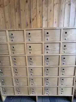 We parked in front, and there were several available spaces. Upon arrival, we opened the shoe cabinet, changed into Japanese-style flip-flops, put them in, and turned the lock. We handed the key to the counter inside. The staff gave us a wristband, which in exchange allowed them to keep the key for us.