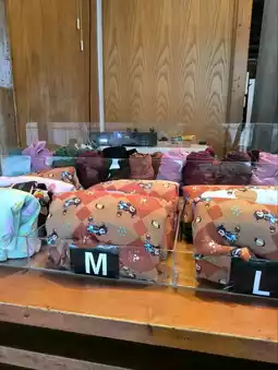 We turned left and went inside to find an outdoor counter where they could choose yukata designs and sash colors. I'm not sure if Yunomori changes designs at every branch, but the designs here aren't particularly cute. They just have the Yunomori logo. I prefer the pretty floral designs from the past.