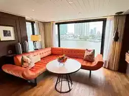 Although we've been to Thailand numerous times, we recently chose Bangkok again, eager to experience the Mandarin Oriental Bangkok for the first time. Unlike the city's newer hotels, this esteemed establishment is Thailand’s oldest, boasting nearly 150 years of history, much like The Peninsula in Hong Kong. It gracefully resides along the Chao Phraya River and is known for housing Thailand’s first elevator and maintaining a charming European-styled Authors’ Wing. Despite its central city location, the hotel offers a vast space that extends across the river, accessible by their classic private boats. This visit, we decided on the State Room, which is the largest non-suite option at the hotel. Located at the floor's corner, our room offered a stunning 270-degree panoramic view of the Chao Phraya River and Bangkok’s skyline, best enjoyed from the private balcony. The room enveloped us in traditional Thai ambiance with elements like teakwood, silk, and vintage decor. The hotel excels in hospitality. From the start of our stay, the manager presented us with orchid bracelets, reflecting the Land of Smile's symbol. While it's not near the railway, private boats conveniently connect guests to city attractions. The airport transfer service features a limousine equipped with massage chairs and TVs, ensuring a luxurious journey.