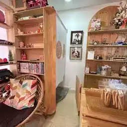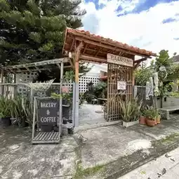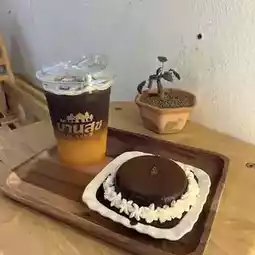 A cafe called "Baan Suk Home Cafe" has a Japanese-style exterior and a beautiful garden inside. It's a small shop with lovely decor. They offer banana cake and brownie cheesecake for 110 baht each. It's delicious! The bottom layer is brownie, while the top half is cheesecake. The owner is lovely. There aren't many seating areas, but every corner is perfect for taking photos. There's a limited selection of cakes, and the drinks are delicious.