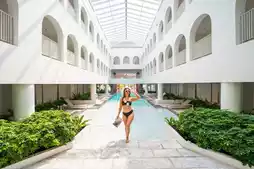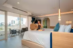 I had a delightful time at this minimalist, white hotel beside the Chao Phraya River. The peaceful ambiance and picturesque spots at every turn were lovely! I appreciated the clean design, the central pool with a glass roof, and the tranquil vibe throughout the premises. We stayed in the Away River Suite (128 sqm) that was very spacious, featuring a large balcony and a bathtub with river views. The room was cozy yet sophisticated with white hues and warm wooden furniture. It was well laid-out with separate living, sleeping, and bathroom spaces, plus all necessary amenities. One of the highlights was Sarin River Terrace, the hotel’s riverside café and restaurant. It's an ideal place to relax in the evening, take in the river views, listen to soft music, and enjoy tasty food. If you're seeking a tranquil riverside retreat near Bangkok with stunning views and a soothing atmosphere, this location is a great option!