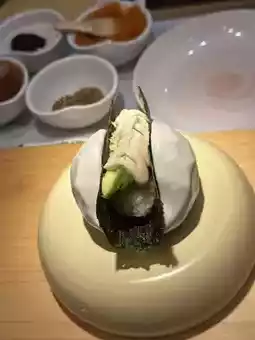Kokoro Omakase at Central Eastville 🍣 The restaurant has a minimalist, simple design, standing out with its wooden counter. You can eat here repeatedly, no need to make a long reservation, no need to dress code, and the prices are reasonable. This time, I ordered a 7-piece hand roll (large) starting at 1,190++ baht (net 1,400 baht). The course also included lobster. The chef made every bite delicious, guaranteed. ⏰ Central Eastville: 12:00 PM / 5:00 PM / 7:30 PM #EatWithYumi