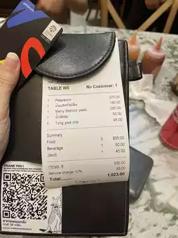 💰We also ordered two drinks. The restaurant accepts credit cards with no additional charge. There's a 10% service charge. The total cost for this meal was 1023/2 = 511.50 per person. The price is reasonable considering the taste and quantity.