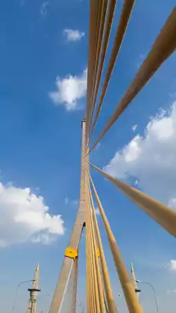 🌉 Rama VIII Bridge... A symbol of elegance above the Chao Phraya River. 🧭 A cable-stayed structure with a single pillar—it stands out like no other. 🔱 The golden tip of the bridge pillar reflects the elegance of Thailand. 🌤️ The sky is slightly overcast with symmetrical cable lines. 🏙️ The background is Bangkok, which blends past and future in one image. 📸 This image feels stable, strong, and elegant at the same time. 🎨 Suitable for use in lessons on “Engineering and Art”. 🎓 Use in active learning activities such as “Analyzing Bridges from Different Perspectives”. 🧠 Encourage students to think about designs that meet both function and beauty. 📱 Suitable for creating TikTok or Canva content that tells the story of Thailand. 💬 This image can be used to open a conversation about "A structure that tells the story of a nation" 🖼️ makes a beautiful poster or lesson slide 🚀 and inspires Gen Alpha to learn about engineering and design 💡 A single image... but opens the door to creativity and pride ❤️ This bridge is more than just a crossing—it's a poem about Thai structures.