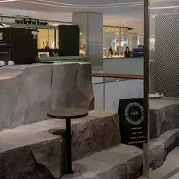 C.P.S. Coffee 🪨☕️ has opened its newest branch at Central World. The shop is beautifully stylish, featuring a gray-and-black color scheme and a stone-like decor. It's a cool spot for content creators to take some great check-in photos.