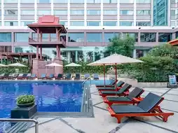 The swimming pool at Ramada Plaza by Wyndham Bangkok Menam Riverside — a tranquil oasis nestled amidst tropical landscaping that’s surrounded by the hotel wings, offering a relaxing retreat from the city bustle. Opening Hours: The outdoor pool is open daily from 07:00 to 22:00 .