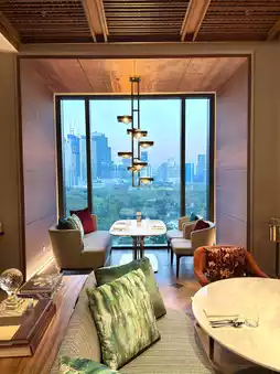 Through the glass windows, the panoramic view of Bangkok's skyline and the greenery of Lumpini Park spread out before us, making us feel like we were in a truly extraordinary place.