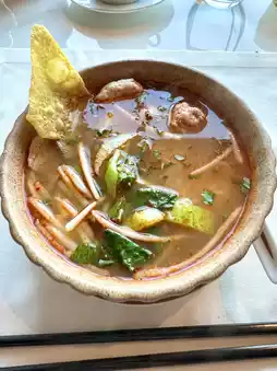 Liveliness and a Diverse Selection: Approximately 80 menu items lined the counter, featuring a diverse selection of Japanese, Western, Chinese, and Thai cuisines. Fresh tom yum noodles and satay (Thai-style grilled skewers) were prepared right before your eyes in the live kitchen. Since it was early in the morning and there weren't many customers, they were especially attentive. The taste was absolutely perfect! Everything was delicious. It was truly an exceptional breakfast.