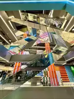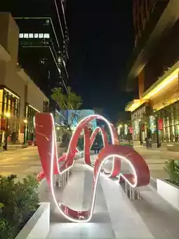 The building is packed with cutting-edge art and architectural beauty, both inside and outside, making it a delight to simply browse. There are a series of photogenic spots, including a graffiti wall, a giant dragon, and a mirrored ceiling. After sunset, the outdoor LED tower, fountain, and neon street lights are fantastically lit up. Enjoy it all day long!