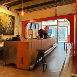 Today, we're featuring LOCAL BOYS COFFEE on Song Wat Road. I couldn't resist the hype, so I had to visit. But I was captivated by this cafe's chic photo-taking spots. It's a delight to take photos. The interior is decorated in orange tones and beautifully lit. Don't miss this trend if you're a fan of this style. The coffee drinks are a must-try. They're absolutely delicious, served in ice-cold cans, perfect for enhancing the flavor.