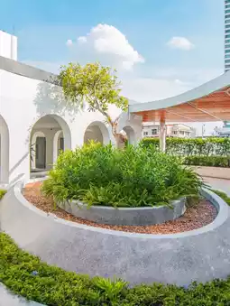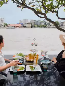 The place features a white minimalist tone and a chic swimming pool, perfect for content creators or anyone who loves dressing up for beautiful photos. Away Bangkok Riverside Kene offers numerous picturesque corners, a serene and lush atmosphere, and an impressive swimming pool design. The rooms come in various styles, fully equipped with amenities. There's also a trendy café area where you can enjoy coffee in the evening or have a romantic riverside dinner while watching boats pass by. The food is delicious, and the breakfast buffet is incredibly satisfying. A visit here is sure to leave you impressed.