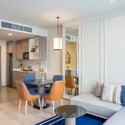 ✨ Staybridge Suites Bangkok Sukhumvit boasts beautiful accommodations decorated in soothing tones and well-proportioned spaces. Our room today is a One Bedroom Suite with a living and dining area, including a bedroom, living room, kitchen, and washing machine. It's fully equipped, giving you a homey feel, but with the premium touches of a luxury hotel. The spacious room features a bedroom, living room, and a fully-equipped kitchen (with a microwave, electric stove, and washing machine). Perfect for a relaxing trip or a longer stay, this place is perfect for a relaxing getaway.
