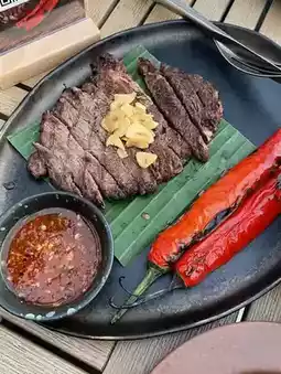 The menu offers a full range of Thai and seafood dishes, all with authentic Thai flavors and a perfect balance of spiciness. 🦐 We recommend the Grilled River Prawns, the Creamy Tom Yum Goong Soup, and the Beef Green Curry, all perfectly balanced and fragrant with the spices. For those who enjoy rice, try the Crispy Pork with Chili and Ginger Stir-fry – it's a delectable dish.