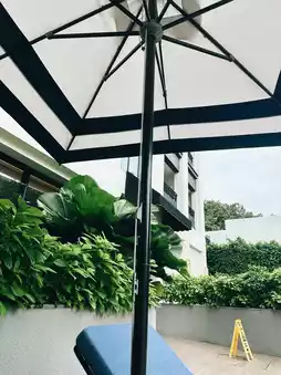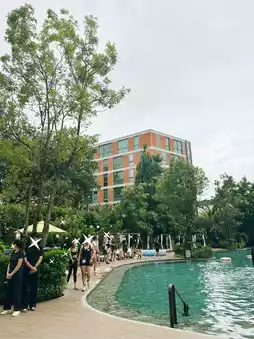 • The highlight is the outdoor swimming pool 🏊♀️, which isn’t just an ordinary pool—it features a small waterfall, creating a wonderfully relaxing atmosphere that feels like an escape from the city’s hustle and bustle 🌴.