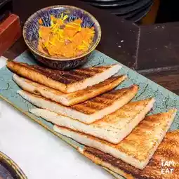 Foie gras, large pieces of foie gras fried until crispy on the outside but soft and juicy on the inside, topped with crispy shredded green onions.