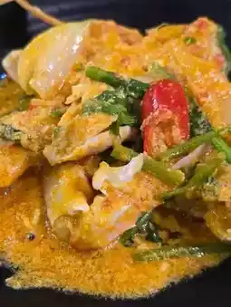 Highlights - Fried Sea Bass with Fish Sauce, Grilled River Prawns, Stir-fried Cabbage with Fish Sauce, and Stir-fried Crab with Curry Powder