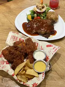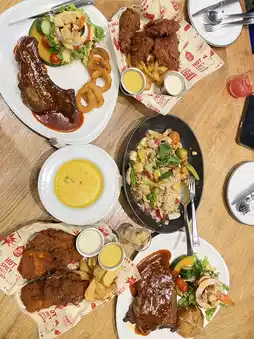 The restaurant's signature pork ribs marinated in a special recipe for 8–12 hours, giving off the aroma of hickory wood and special spices. Served with a juicy barbecue sauce. Garlic bread and fresh salad are so good, you'll want to give it a try!
