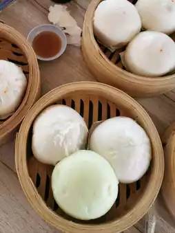 A must-try is the Pork Dumplings 🐖, with their firm, bouncy texture and the natural sweetness of the pork. And the Shrimp Dumplings 🦐 are bursting with fresh shrimp, their crispy texture perfectly complementing the perfectly thin wrapper. There's also the Flowing Buns 🥯, which reveal a golden, melt-in-your-mouth oozing salted egg yolk lava filling. So satisfying, you'll want to order another one! 😋