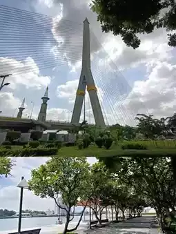 🔥For an interesting viewpoint of the Chao Phraya River and Rama VIII Bridge, head to Suan Luang Rama VIII Park. Inside, you'll find a monument to King Ananda Mahidol (Rama VIII). There's also a riverside pavilion and a pier with a beautiful atmosphere. The scenery is stunning, and the Rama VIII Bridge is a perfect place for relaxation, exercise, and a refreshing riverside breeze.