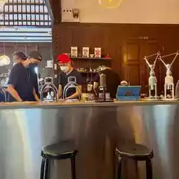 1. The barista is "Mother," over 70 years old, a shop icon, serving coffee with warmth.
