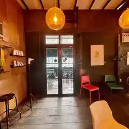 The shop is housed in a two-story old wooden building with a vintage atmosphere and local charm.