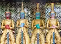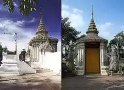 The Four Great Pagodas of the Four Reigns are four chedis built at Wat Pho (Temple of the Reclining Buddha) to represent the reigns of the first four monarchs of the Rattanakosin period, from King Rama I to King Rama IV. Each chedi has a distinct color and style, and was built during different reigns, reflecting the beauty of Thai architecture.