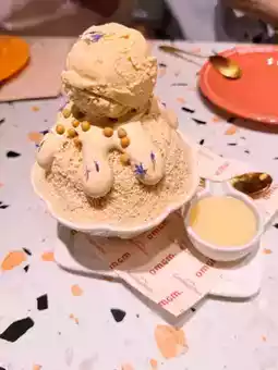 • Earl Grey Chiffon Cake — Soft, creamy cake topped with puffed rice for extra crispiness and a deep aroma of Earl Grey tea