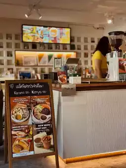 The cafe has a decent amount of seating on both the first and second floors. They offer a selection of coffee and non-coffee drinks, as well as desserts and savory options.