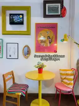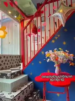 #MustVisitCafe: If you're visiting Siam and can't decide which cafe to go to, I highly recommend this cute cafe. Tucked away on the second floor of Lido, this small cafe offers colorful decor and pastries. The second floor of the cafe houses a nail salon. If you want to try your nails, make a reservation in advance, as the queue is always long. Let me tell you, this shop has beautiful nails. Afterward, we continued to the cafe. This place is so photogenic, with many angles to choose from. They also sell cute clothes and merchandise. With such a central location, how could you not stop by?