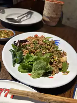 I'll tell you, the fried chicken and grilled pork are absolutely delicious. The papaya salad with fermented fish is also great, but if you like it spicy, be sure to ask the restaurant for it extra spicy.