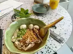 The must-try dish is the rich and flavorful boat noodles 🐷 with a perfectly balanced broth. Additionally, don't miss the fresh pork waterfall noodles with liver, which are tender, aromatic, and delightfully spicy 🌶️. Pair it with the refreshing honey chrysanthemum snow drink 🧊🌼 for a sweet and soothing finish.