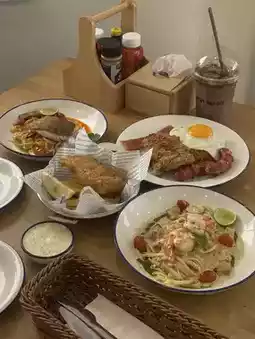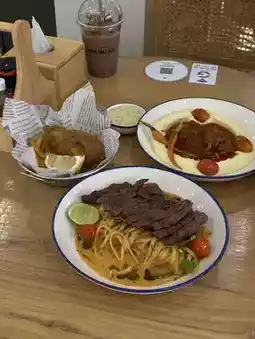 Today, we're introducing Mae Nu's afternoon menu. They offer a wide selection of pasta, fusion, and other Halal single-dish options. The spaghetti and pasta are truly outstanding. The flavors are incredibly Thai, incredibly spicy, and incredibly well-prepared. The Tom Yum Spaghetti is incredibly spicy and flavorful. I give it a 10/10, no deductions. The prices are reasonable. All the desserts are also delicious, a must-try!