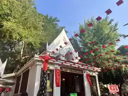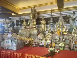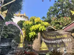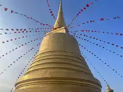 Upon arriving, you'll find a variety of shops and various merit-making activities. Walk straight to the entrance, and you'll need to climb the stairs to pay your respects. Thais don't need to buy a ticket; foreigners can go directly up. There are 344 steps, and you can enjoy the beautiful scenery along the side, lined with trees. Once you reach the top, you can pay your respects to the Phra Borommaphat, or Phu Khao Thong, the symbol of Wat Saket. King Rama III commissioned the construction of this sacred site. After your worship, you can walk around the Phu Khao Thong for panoramic views of Bangkok and stunning photo opportunities.