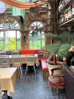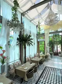 B Story Cafe's distinctive design combines vintage and European influences. The building resembles a large glasshouse, surrounded by trees, flowers, and decorative objects, creating a warm and romantic atmosphere. The interior features a variety of wooden furniture, including antique chairs, carved wooden tables, and handmade decorations, adding liveliness to every corner. There are photo opportunities everywhere, from the mirrors, windows, and the outdoor garden, making this cafe a favorite among photography enthusiasts.