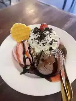The other dishes are also delicious. The spaghetti is rich and the American fried rice is average. My favorite is the mashed potatoes. They're incredibly smooth and flavorful. And to top it off, they have ice cream to cut through the richness. It's a childhood favorite. So happy! 😆