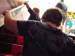 I visited POP MART Siam Square in the evening (around 6:45–7:15 pm) of a weekday, and we were able to walk straight in with no line at the door. Pushchairs can’t go inside, and anyway the entrance is stepped, but staff make this easy—they ask you to leave the stroller at the door with security, and you’re given a numbered tag to collect it afterwards. There were two security staff on duty, which felt reassuring. They helped me lift the double pushchair to the top of the steps to they could have it in a secure area while we went inside.