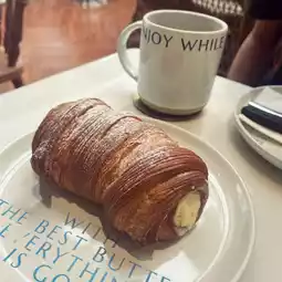 This time, I tried the Danish butter roll and the cheesecake. The butter roll was delightfully crispy with rich buttery layers that weren’t overwhelming, making it impossible to stop at just one bite. The cheesecake had a dense texture and carried the unique smooth aroma of Échiré butter, with just the right level of sweetness—truly irresistible. The shop’s ambiance was also very comfortable, quiet, and elegant, making it a perfect spot to sit back and enjoy. However, the drinks were quite ordinary and not particularly memorable.