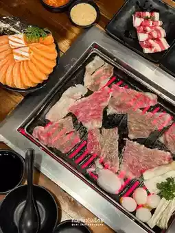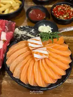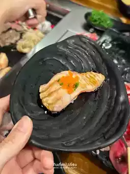 #BangkokAttractions Oranjii, a grilling spot in a prominent location, stands tall in the heart of Saphan Khwai Intersection. Its highlight is probably its NET price, which means customers like us don't have to calculate whether it's worth it or not. And it's a real bargain! 😂 799 gets you a full range of meat, seafood, shrimp, shellfish, salmon, sushi, and sashimi. Why don't they open one near my house? I'll be going there often! 🥹 There might be a downside for those with a sweet tooth who choose this price range, as it only includes milk-flavored ice cream. That's it for me, though, as I love beef and salmon. ❤️