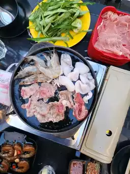 Enjoy all-you-can-eat meat (beef, chicken, pork), seafood (shrimp, squid), vegetables, rice, noodles, and even ice cream! 😋