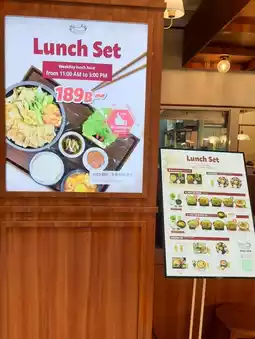 What's interesting is that they also offer affordable lunch sets on weekdays, like the Pork Belly BBQ Grill Plate, which is just over 100 baht. It includes rice, soup, kimchi, and a full complement of side dishes, making it a great value for those visiting the mall during lunchtime.