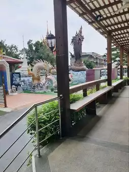 If you're looking for a place to relax after making merit, paying respects, and enhancing your fortune at Wat Nak Prok, don't miss "Nakrat Coffee." 💕 This cafe is hidden within the temple, offering a peaceful and shady atmosphere, perfect for relaxing and chatting.